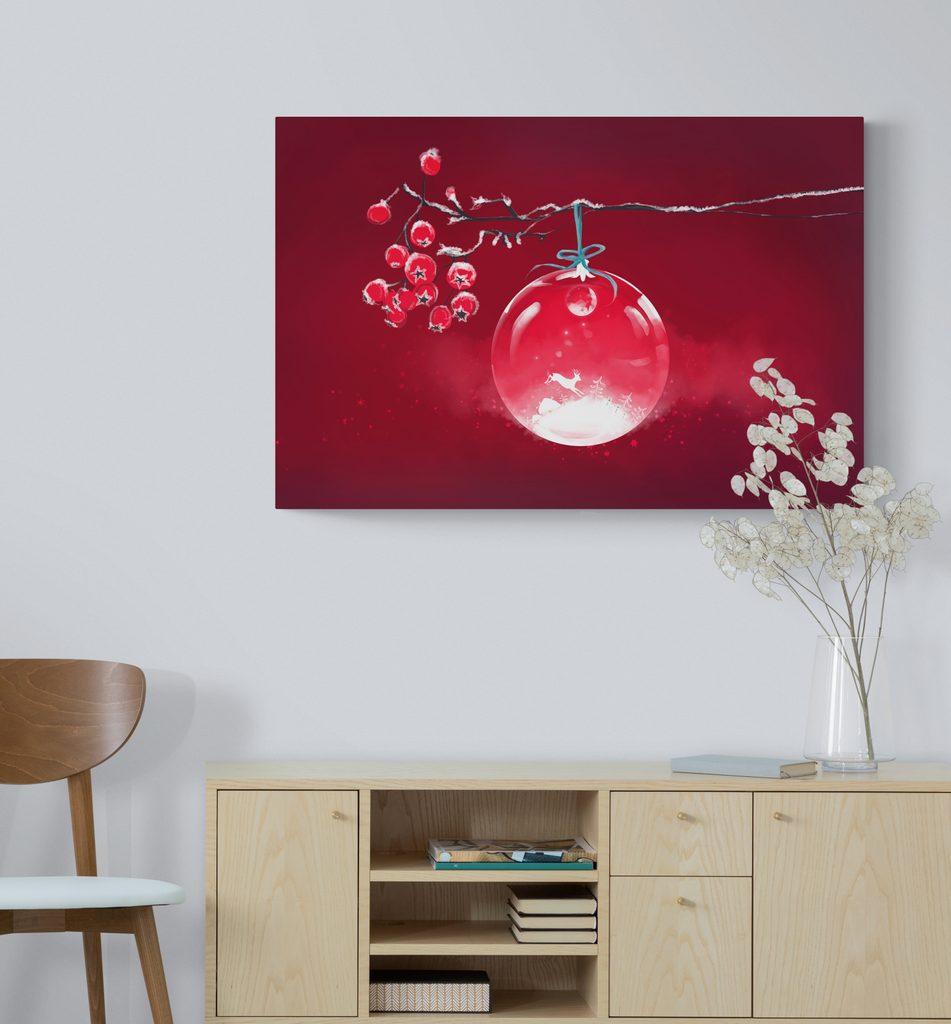 Obraz krásna vianočná guľa na červenom pozadí