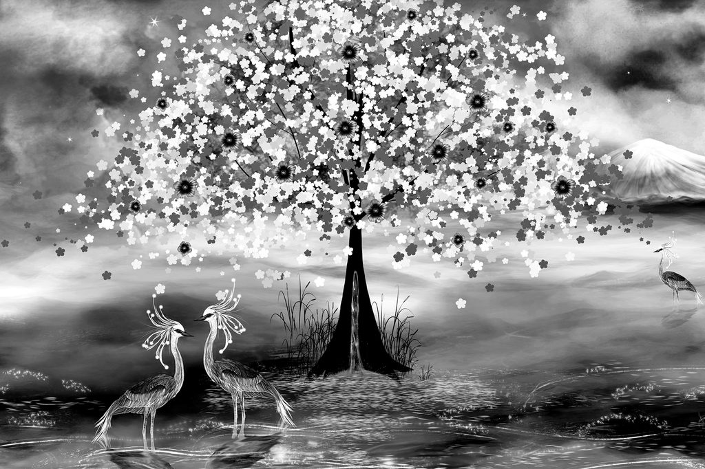 Obraz krásy japonskej prírody v čiernobielom prevedení