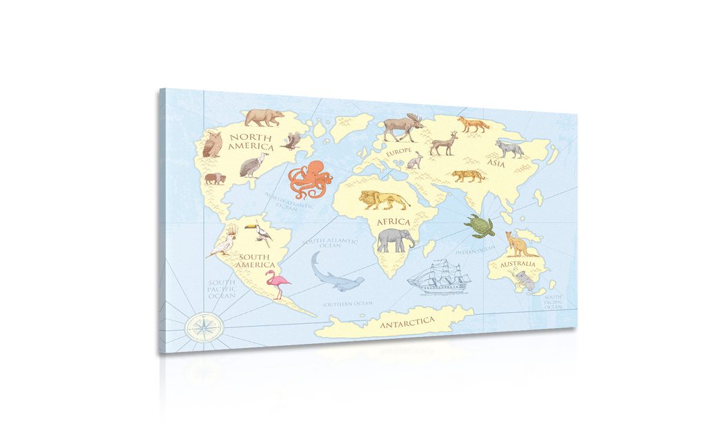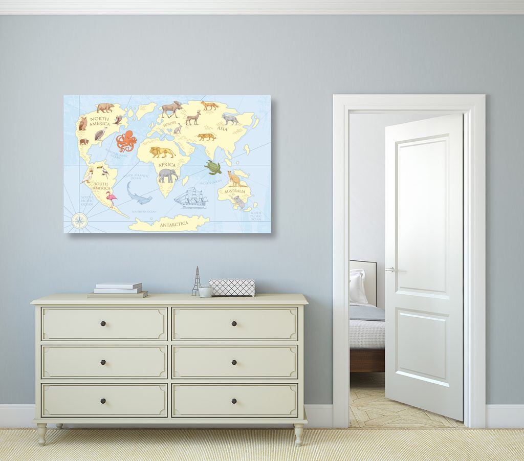 Obraz mapa sveta s popisom jednotlivých kontinentov