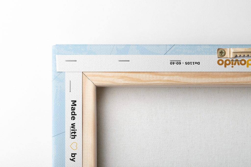 Keďže chceme, aby obraz na vašej stene vyzeral dokonalo, zameriavame sa na detaily. Preto je plátno dôkladne napnuté na rám, ktorý je z kvalitného dreva. Použitý rám je vyrábaný z rámarských líšt, ktoré sú vhodné na výrobu obrazov. Netreba zabudnúť ani na to, že na zadnej strane sú nahusto umiestnené spony. Spolu s obrazmi obdržíte 1 až 2 ks závesov, ktoré sú umiestené na zadnej strane, podľa toho, aký rozmer obrazu si zvolíte. Pre obrazy, ktorých šírka je nad 120 cm je na zosilnenie rámu vsadená drevená priečka.