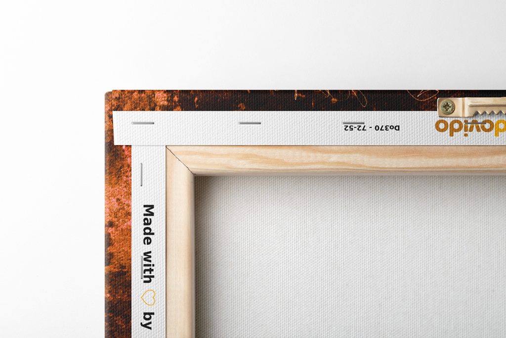 Keďže chceme, aby obraz na vašej stene vyzeral dokonalo, zameriavame sa na detaily. Preto je plátno dôkladne napnuté na rám, ktorý je z kvalitného dreva. Použitý rám je vyrábaný z rámarských líšt, ktoré sú vhodné na výrobu obrazov. Netreba zabudnúť ani na to, že na zadnej strane sú nahusto umiestnené spony. Spolu s obrazmi obdržíte 1 až 2 ks závesov, ktoré sú umiestené na zadnej strane, podľa toho, aký rozmer obrazu si zvolíte. Pre obrazy, ktorých šírka je nad 120 cm je na zosilnenie rámu vsadená drevená priečka.