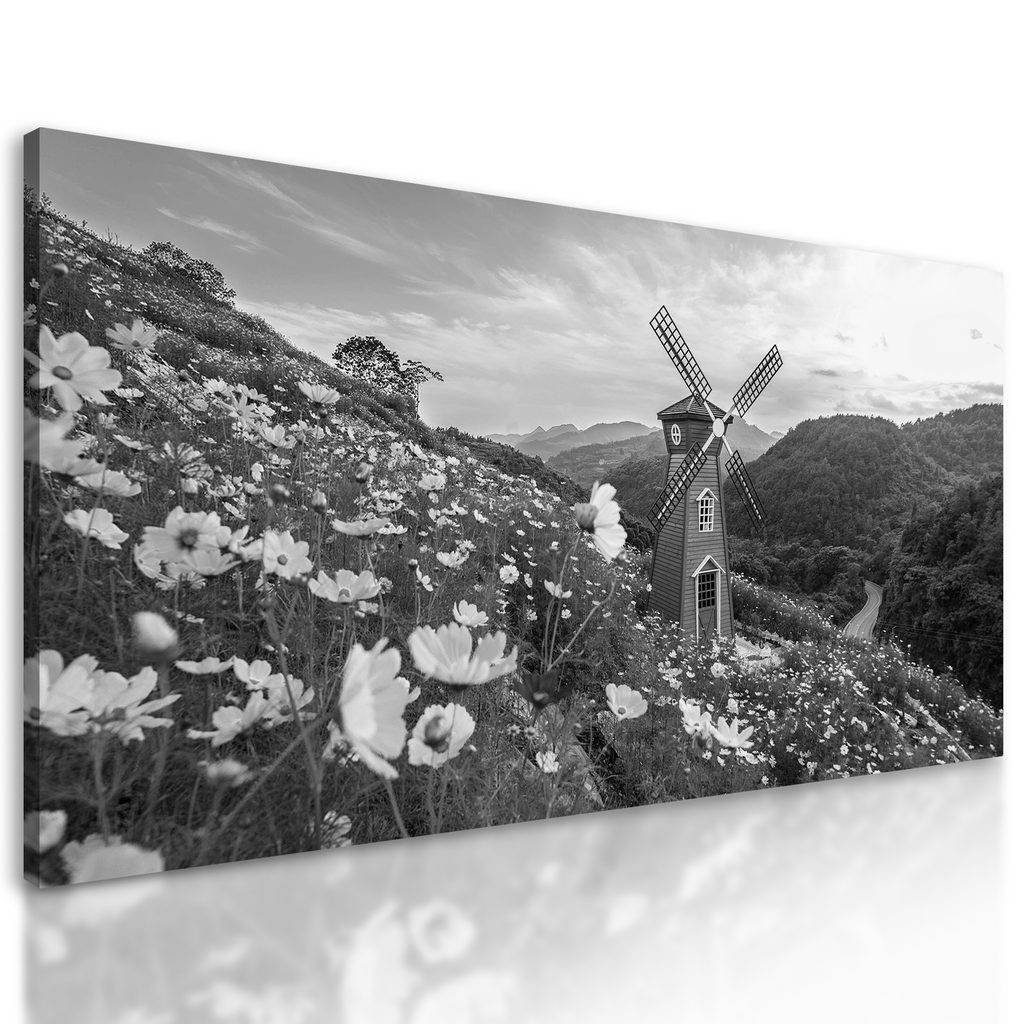 Obraz čiernobiela letná lúka v plnej kráse