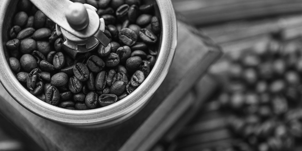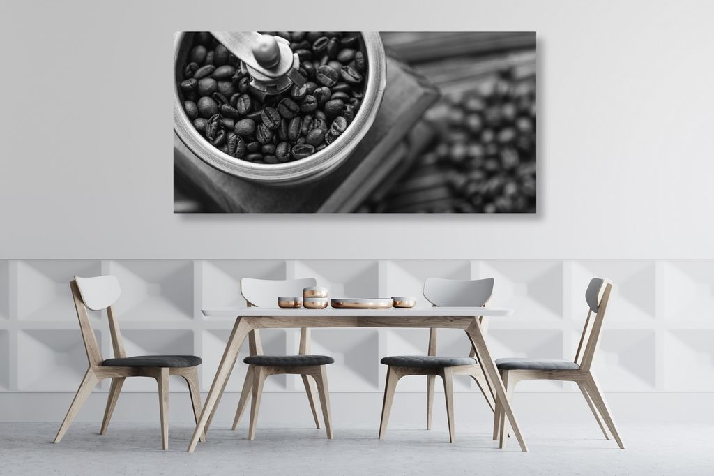 Obraz kvalitné zrnká kávy v čiernobielom prevedení