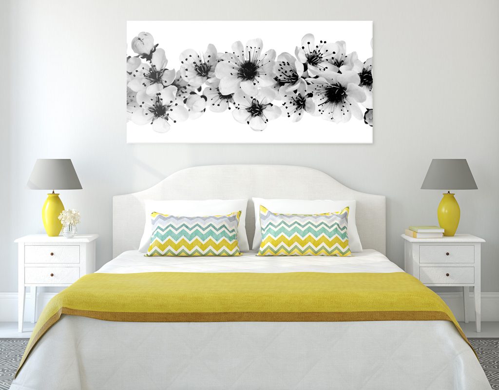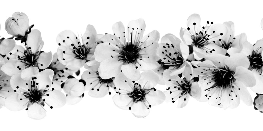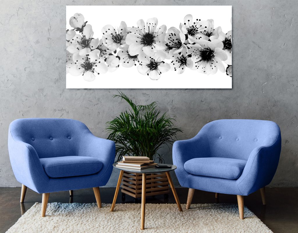 Obraz kvety čerešne na bielom pozadí v čiernobielom prevedení