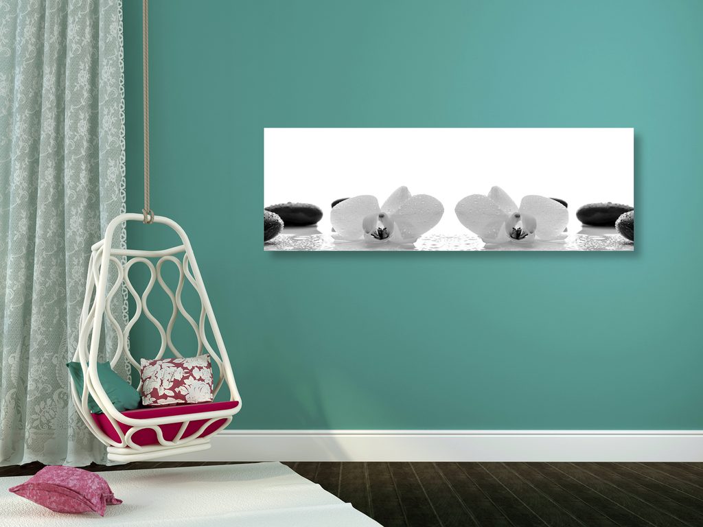 Obraz kvety orchidey a zen kamene v čiernobielom prevedení