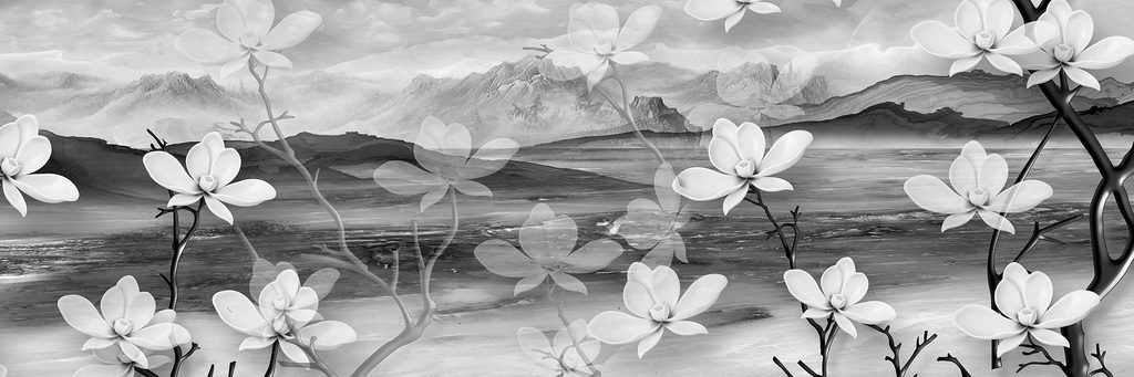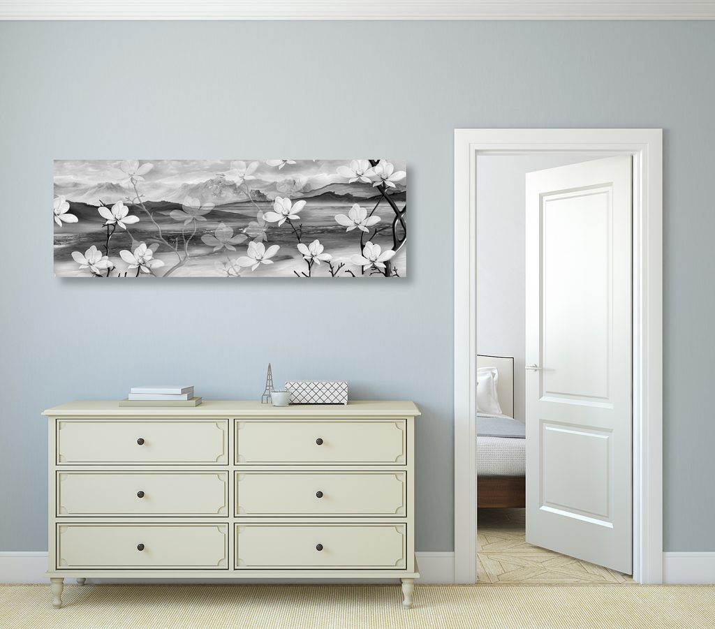 Obraz kvety s ľadovým pozadím v čiernobielom prevedení