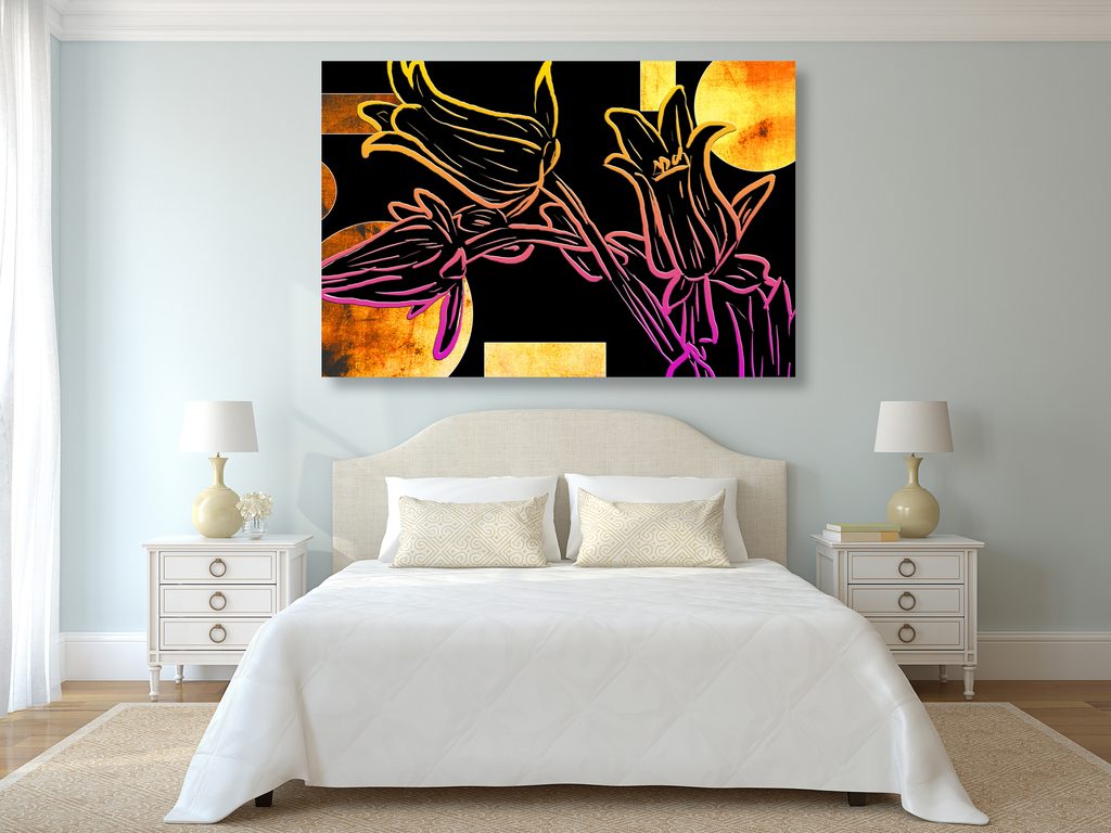 Obraz kvety v abstraktnom neónovom prevedení