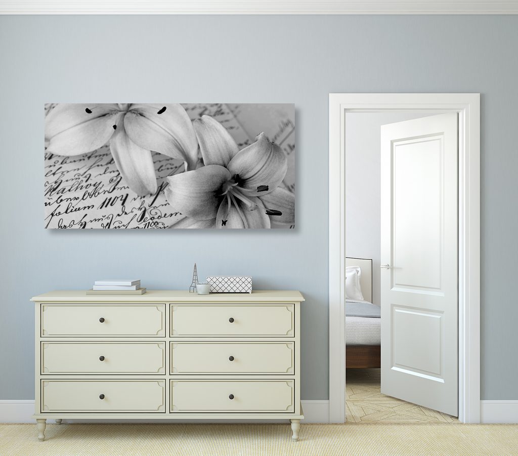 Obraz ľalia na ľúbostnom liste v čiernobielom prevedení