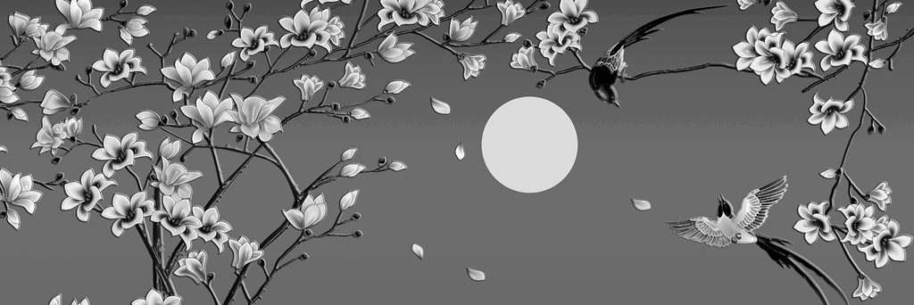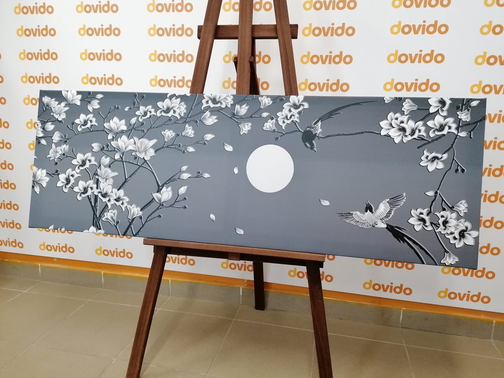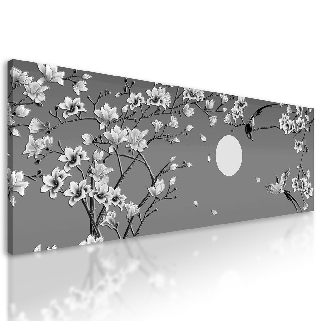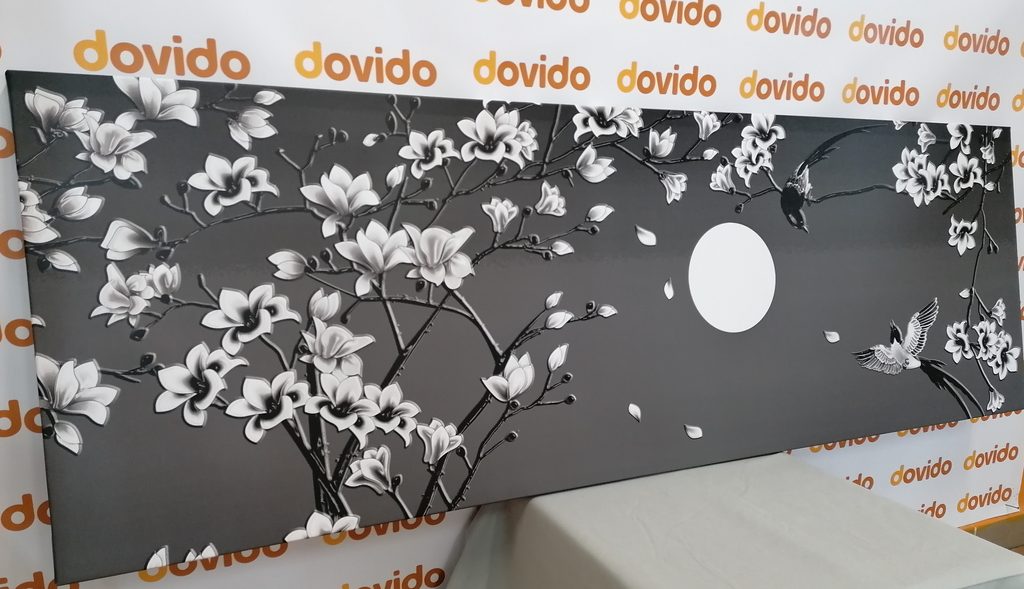 Obraz rozkvitnutá čerenšňa v čiernobielom prevedení
