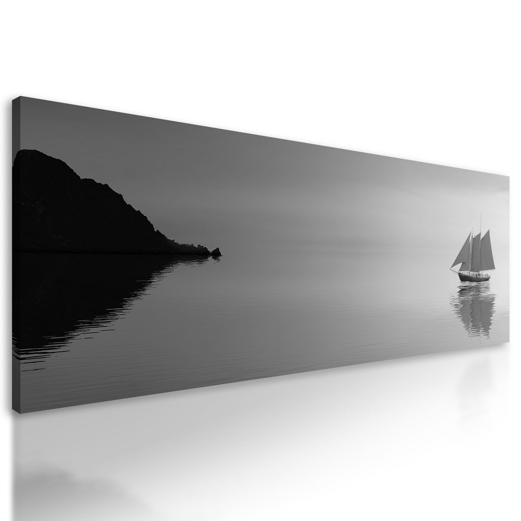 Obraz loďka na šírom mori v čiernobielom prevedení
