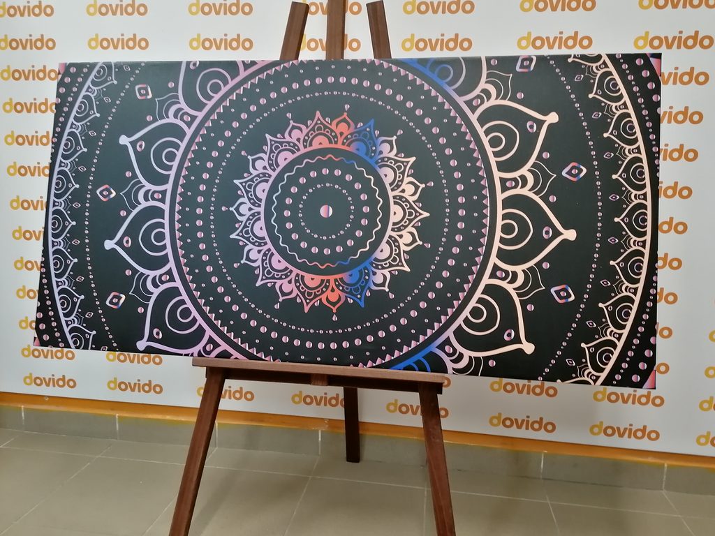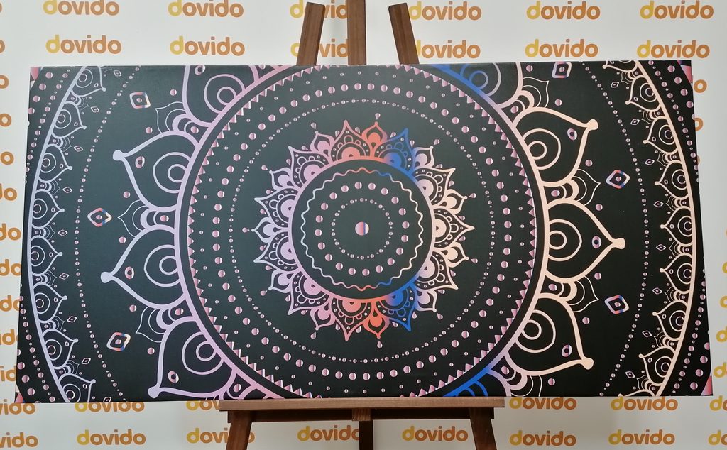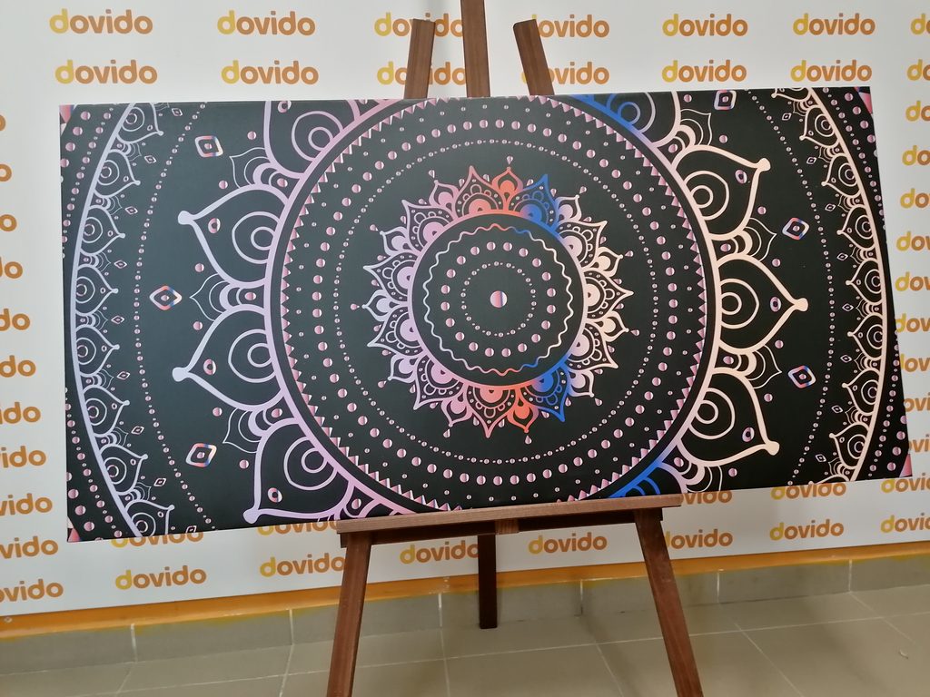 5-dielny obraz strieborná mandala v čiernobielom prevedení