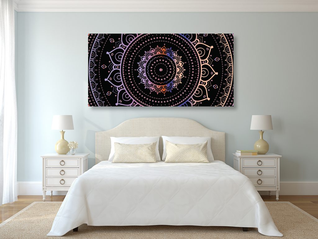 5-dielny obraz Feng Shui symbol na fialovom pozadí
