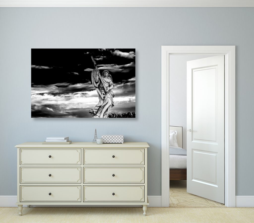 Obraz majestátny anjel na oblohe v čiernobielom prevedení