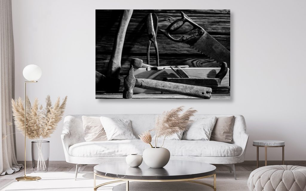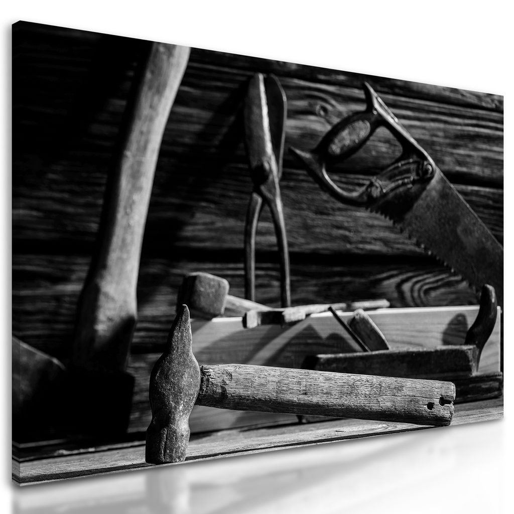 Obraz majstrovská dielňa v čiernobielom prevedení