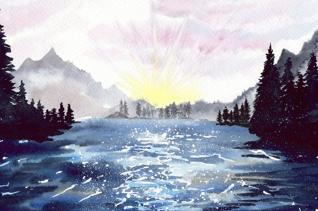 5-dielny obraz čiernobiela maľba rieky uprostred hôr