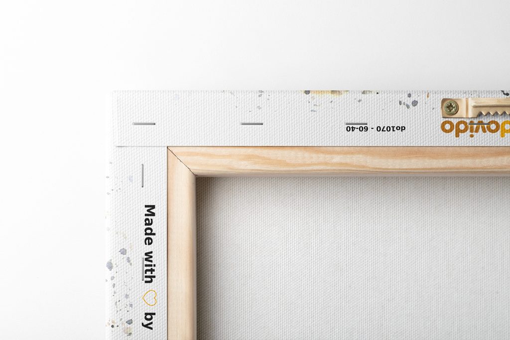 Keďže chceme, aby obraz na vašej stene vyzeral dokonalo, zameriavame sa na detaily. Preto je plátno dôkladne napnuté na rám, ktorý je z kvalitného dreva. Použitý rám je vyrábaný z rámarských líšt, ktoré sú vhodné na výrobu obrazov. Netreba zabudnúť ani na to, že na zadnej strane sú nahusto umiestnené spony. Spolu s obrazmi obdržíte 1 až 2 ks závesov, ktoré sú umiestené na zadnej strane, podľa toho, aký rozmer obrazu si zvolíte. Pre obrazy, ktorých šírka je nad 120 cm je na zosilnenie rámu vsadená drevená priečka.