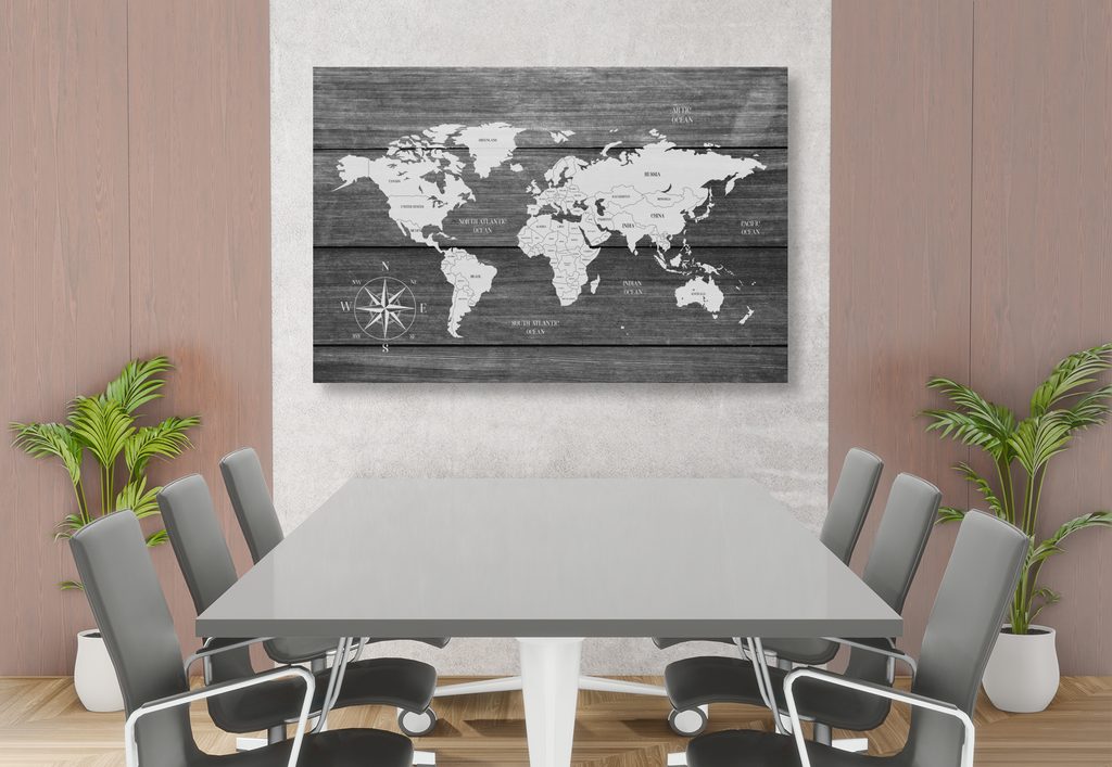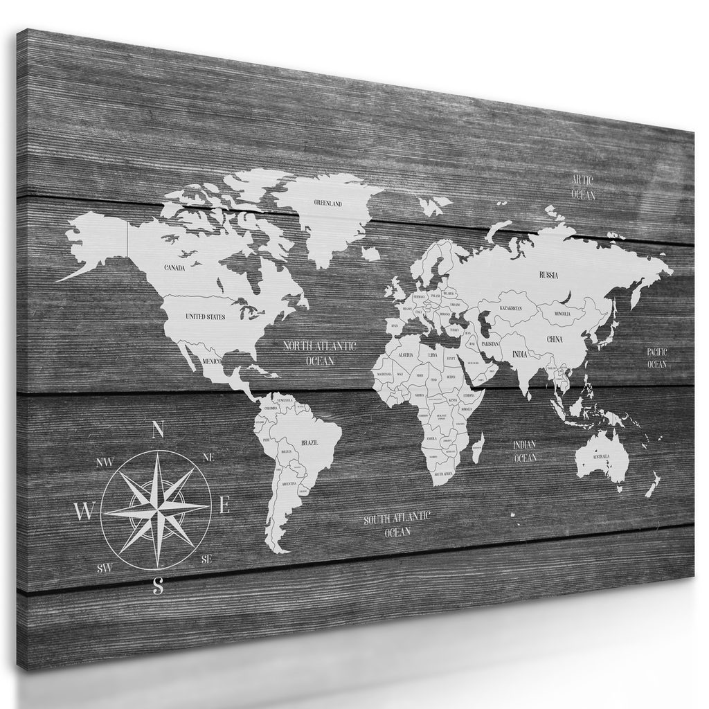 Obraz moderná mapa sveta v čiernobielom prevedení