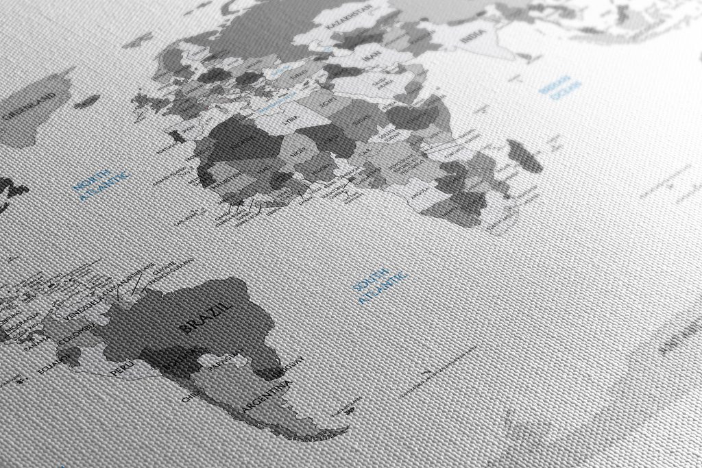 Obraz umelecká abstrakcia mapy sveta v čiernobielom prevedení