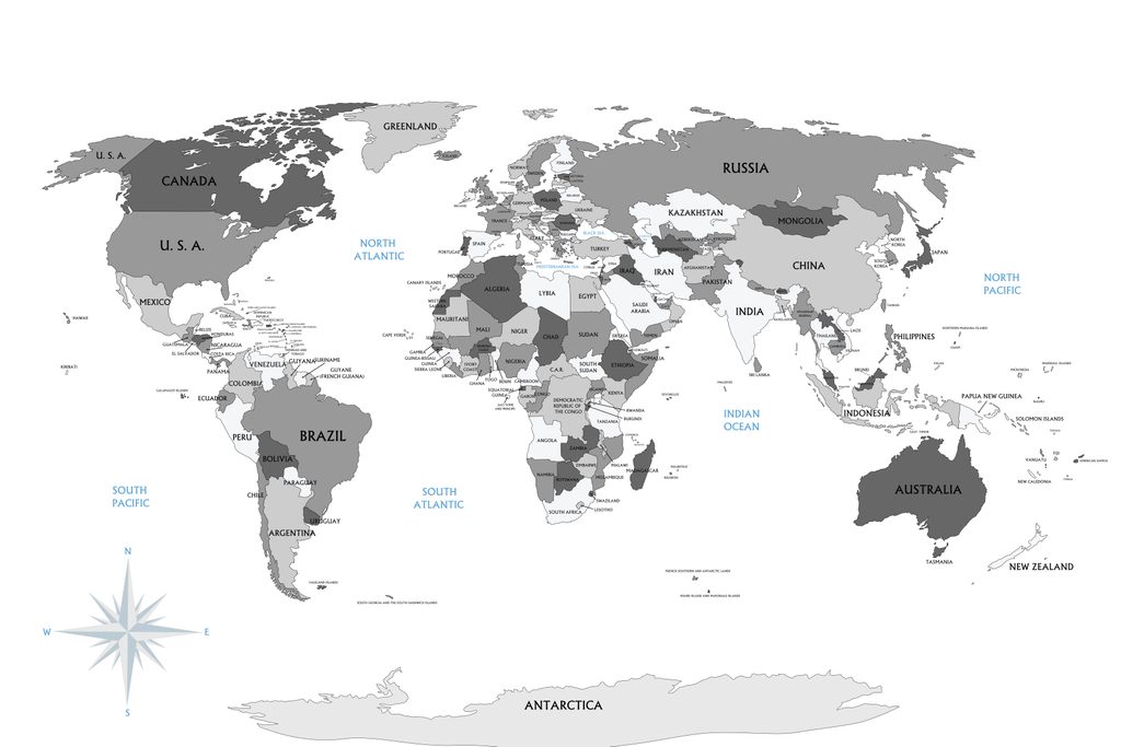 Obraz prehľadná šedá mapa sveta na bielom pozadí
