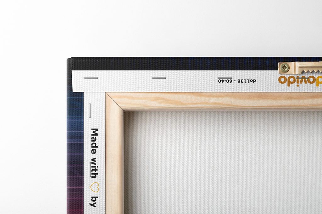 Keďže chceme, aby obraz na vašej stene vyzeral dokonalo, zameriavame sa na detaily. Preto je plátno dôkladne napnuté na rám, ktorý je z kvalitného dreva. Použitý rám je vyrábaný z rámarských líšt, ktoré sú vhodné na výrobu obrazov. Netreba zabudnúť ani na to, že na zadnej strane sú nahusto umiestnené spony. Spolu s obrazmi obdržíte 1 až 2 ks závesov, ktoré sú umiestené na zadnej strane, podľa toho, aký rozmer obrazu si zvolíte. Pre obrazy, ktorých šírka je nad 120 cm je na zosilnenie rámu vsadená drevená priečka.
