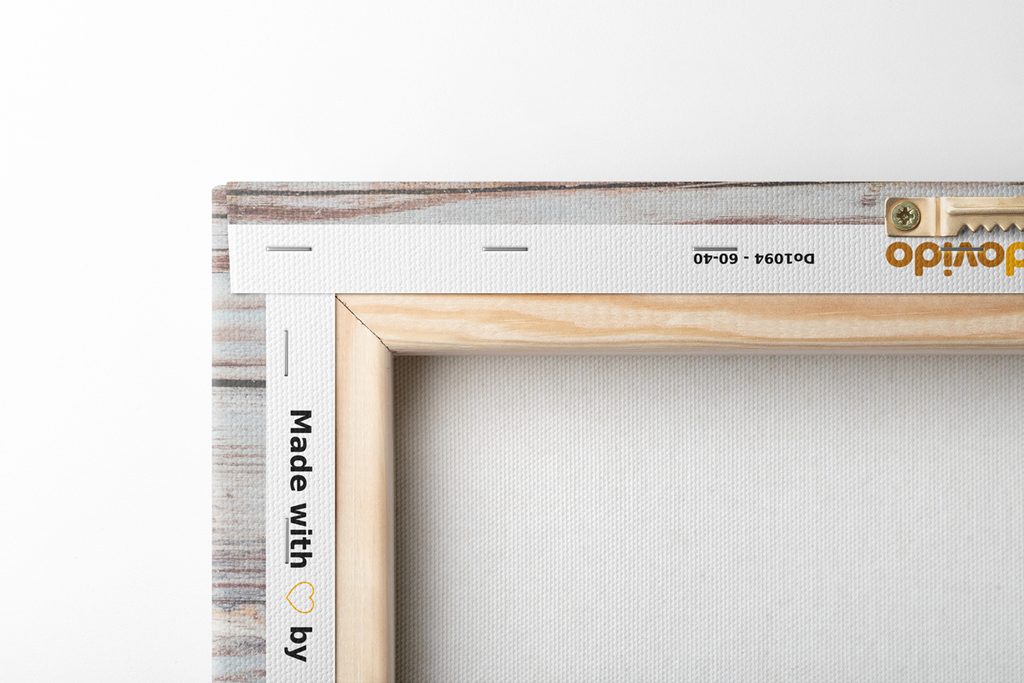 Keďže chceme, aby obraz na vašej stene vyzeral dokonalo, zameriavame sa na detaily. Preto je plátno dôkladne napnuté na rám, ktorý je z kvalitného dreva. Použitý rám je vyrábaný z rámarských líšt, ktoré sú vhodné na výrobu obrazov. Netreba zabudnúť ani na to, že na zadnej strane sú nahusto umiestnené spony. Spolu s obrazmi obdržíte 1 až 2 ks závesov, ktoré sú umiestené na zadnej strane, podľa toho, aký rozmer obrazu si zvolíte. Pre obrazy, ktorých šírka je nad 120 cm je na zosilnenie rámu vsadená drevená priečka.