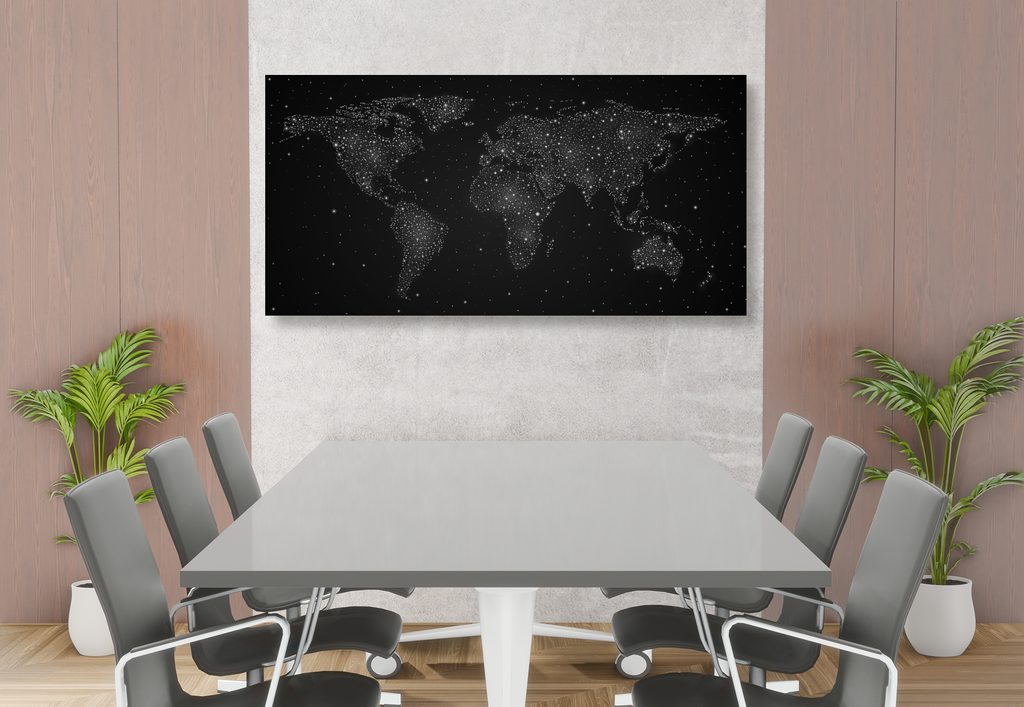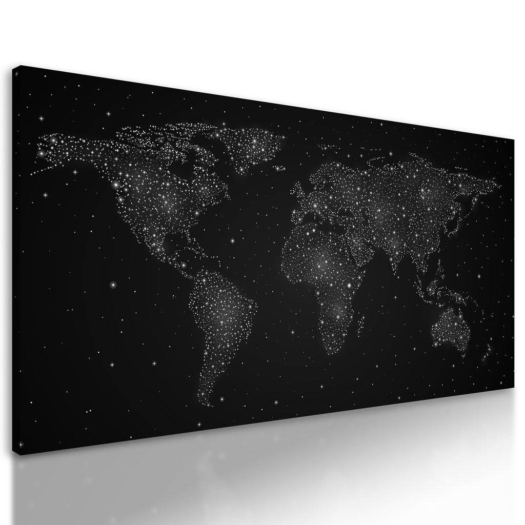 Obraz mapa sveta na nočnej oblohe v čiernobielom prevedení