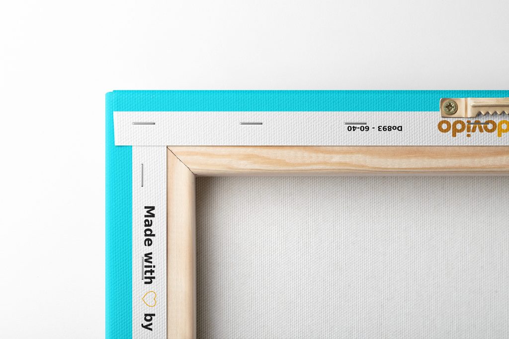 Keďže chceme, aby obraz na vašej stene vyzeral dokonalo, zameriavame sa na detaily. Preto je plátno dôkladne napnuté na rám, ktorý je z kvalitného dreva. Použitý rám je vyrábaný z rámarských líšt, ktoré sú vhodné na výrobu obrazov. Netreba zabudnúť ani na to, že na zadnej strane sú nahusto umiestnené spony. Spolu s obrazmi obdržíte 1 až 2 ks závesov, ktoré sú umiestené na zadnej strane, podľa toho, aký rozmer obrazu si zvolíte. Pre obrazy, ktorých šírka je nad 120 cm je na zosilnenie rámu vsadená drevená priečka.