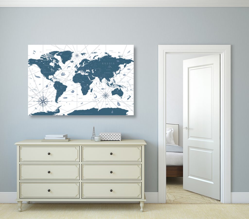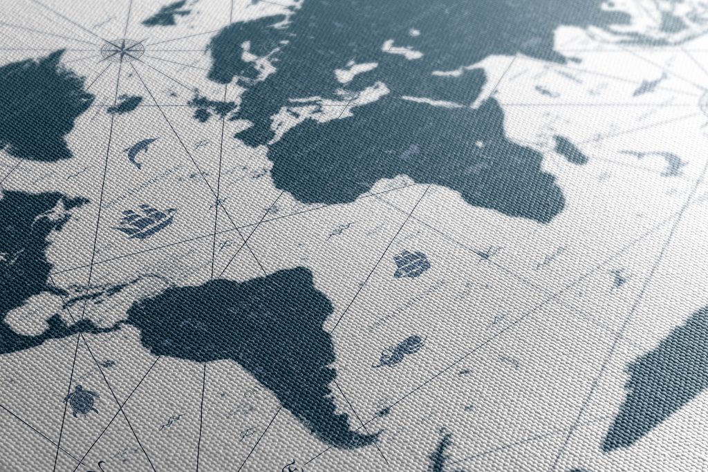 Obraz mapa sveta s historickým nádychom v modrom prevedení