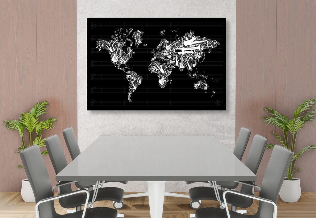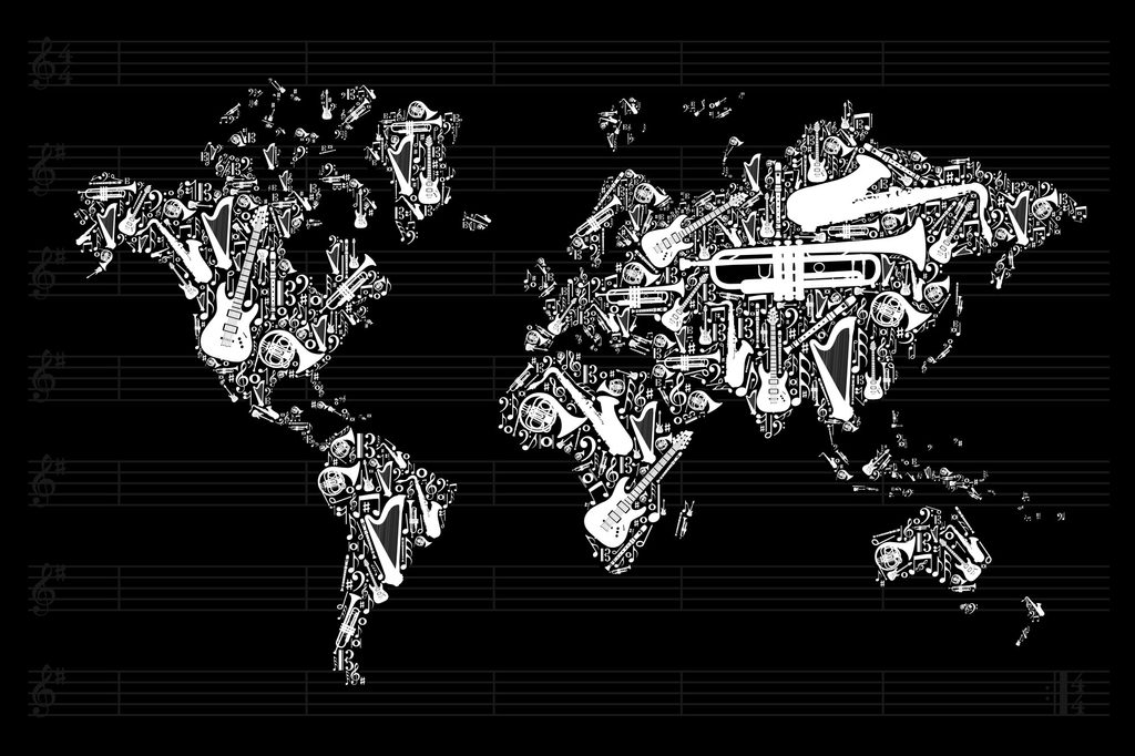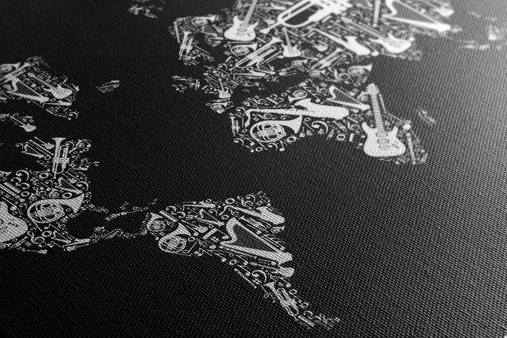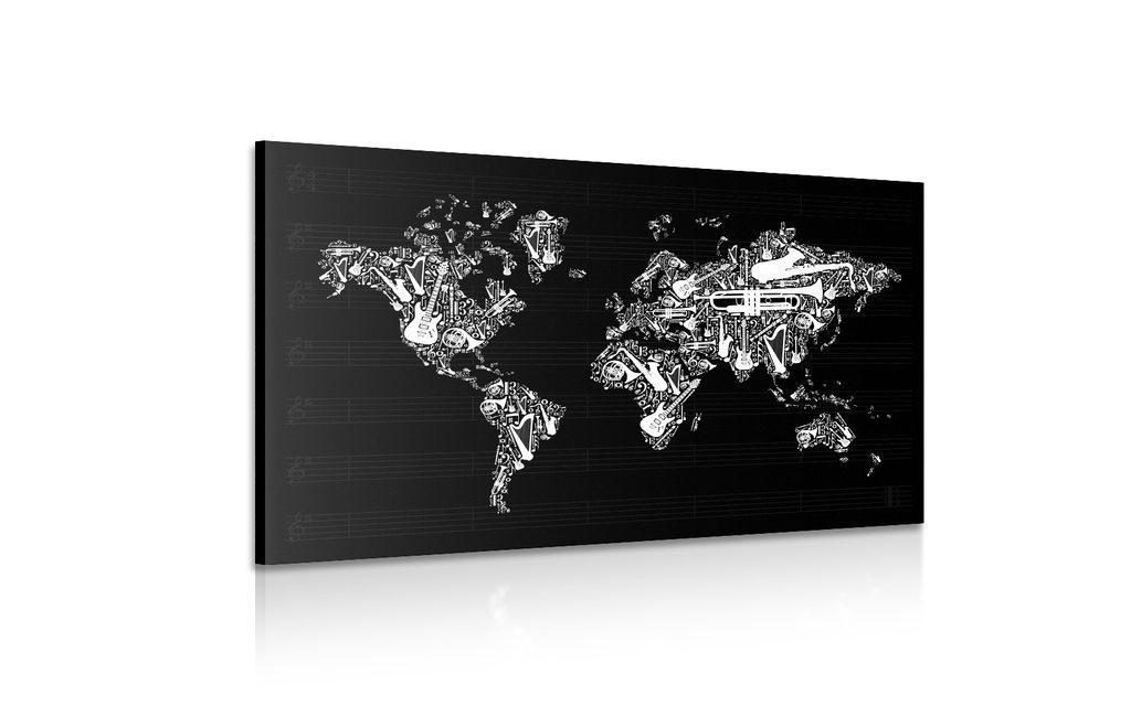 Obraz mapa sveta s hudobným motívom