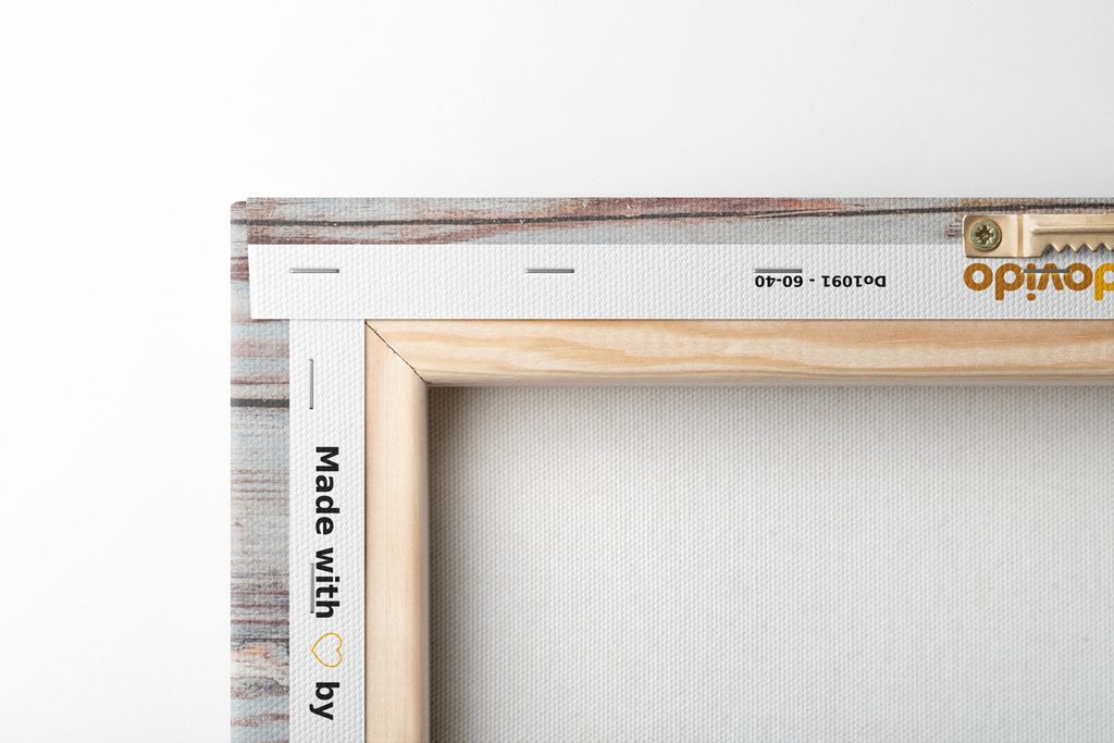 Keďže chceme, aby obraz na vašej stene vyzeral dokonalo, zameriavame sa na detaily. Preto je plátno dôkladne napnuté na rám, ktorý je z kvalitného dreva. Použitý rám je vyrábaný z rámarských líšt, ktoré sú vhodné na výrobu obrazov. Netreba zabudnúť ani na to, že na zadnej strane sú nahusto umiestnené spony. Spolu s obrazmi obdržíte 1 až 2 ks závesov, ktoré sú umiestené na zadnej strane, podľa toho, aký rozmer obrazu si zvolíte. Pre obrazy, ktorých šírka je nad 120 cm je na zosilnenie rámu vsadená drevená priečka.