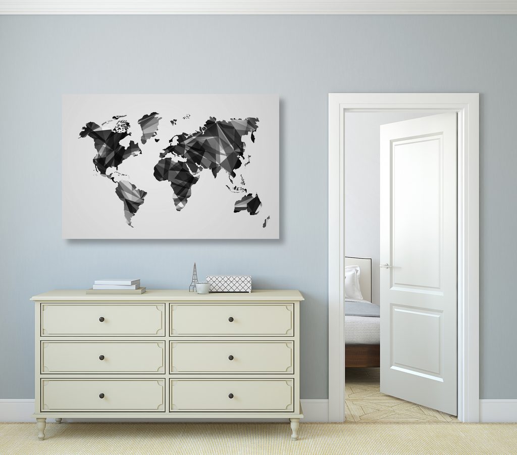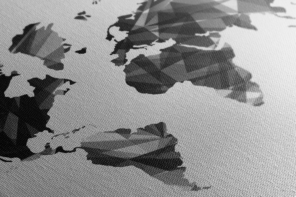 Obraz mapa sveta tovrená polygonmi v čiernobielom prevedení