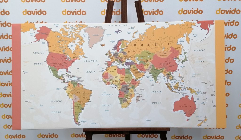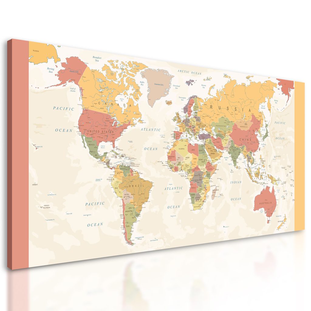 Obraz na korku mapa sveta v pestrofarebnom prevedení