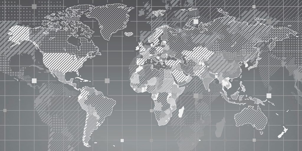 5-dielny obraz čiernobiela mapa sveta tvorená polygónmi