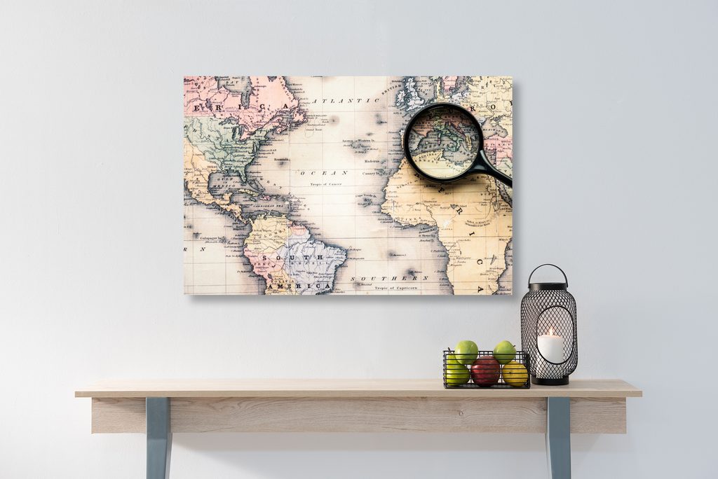 Obraz na korku umelecká mapa sveta v čiernobielom prevedení