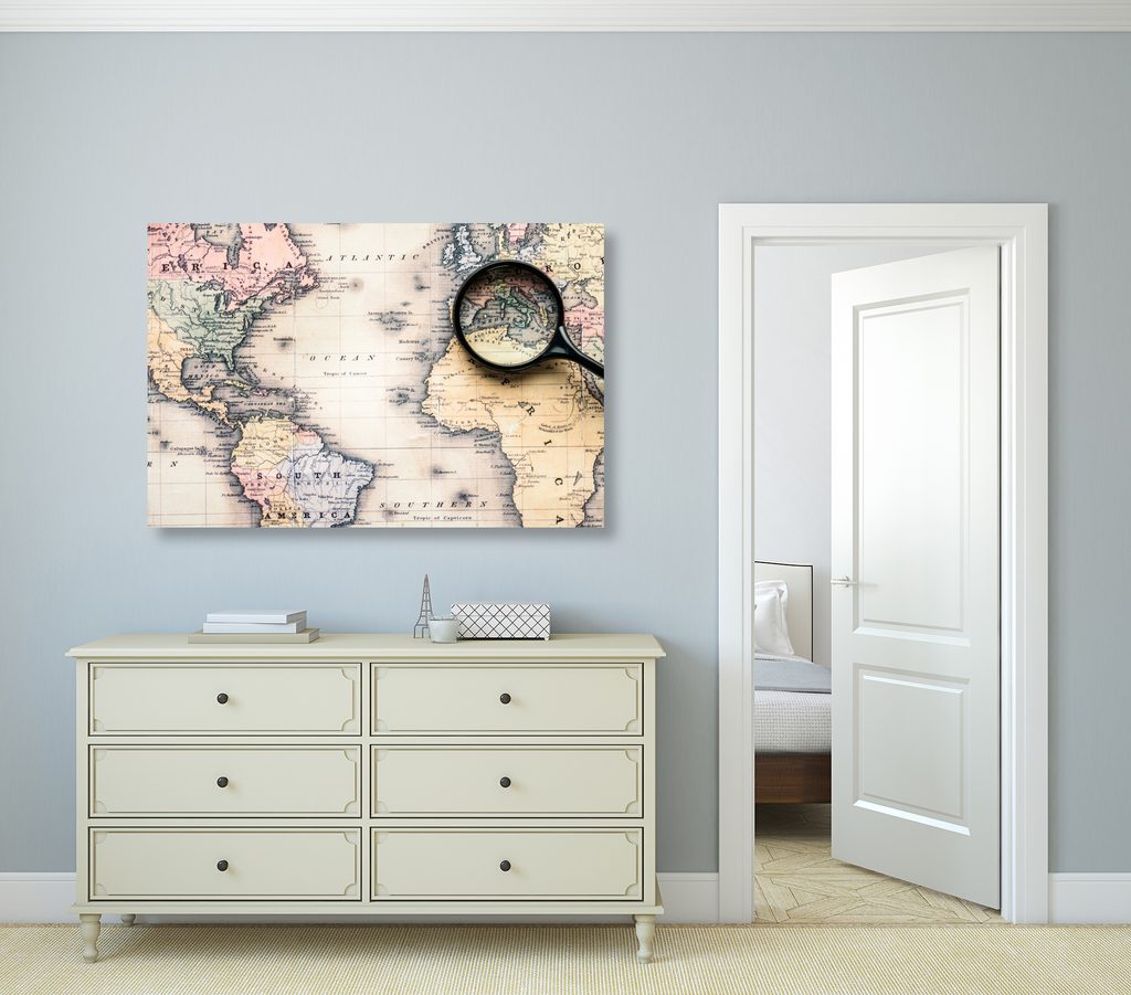 Obraz na korku mapa sveta na dreve v luxusnom prevedení