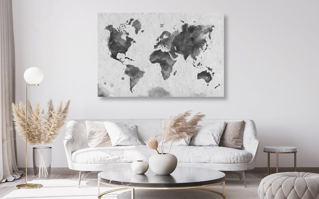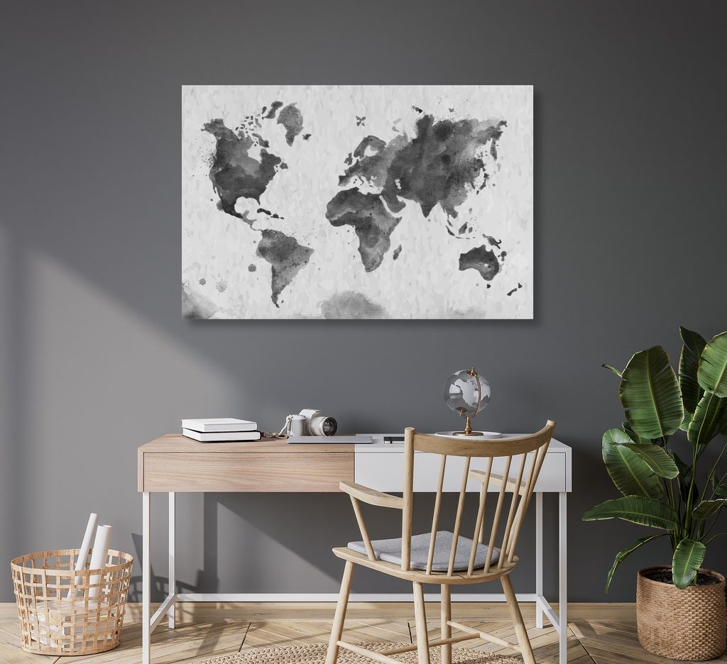 Obraz na korku čiernobiela mapa sveta v modernom prevedení