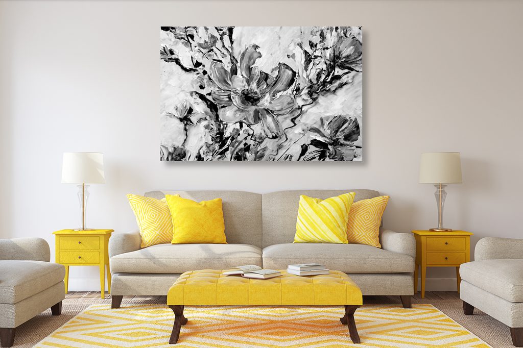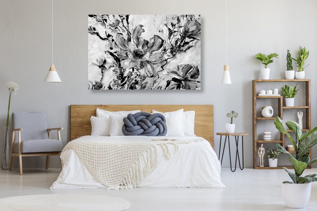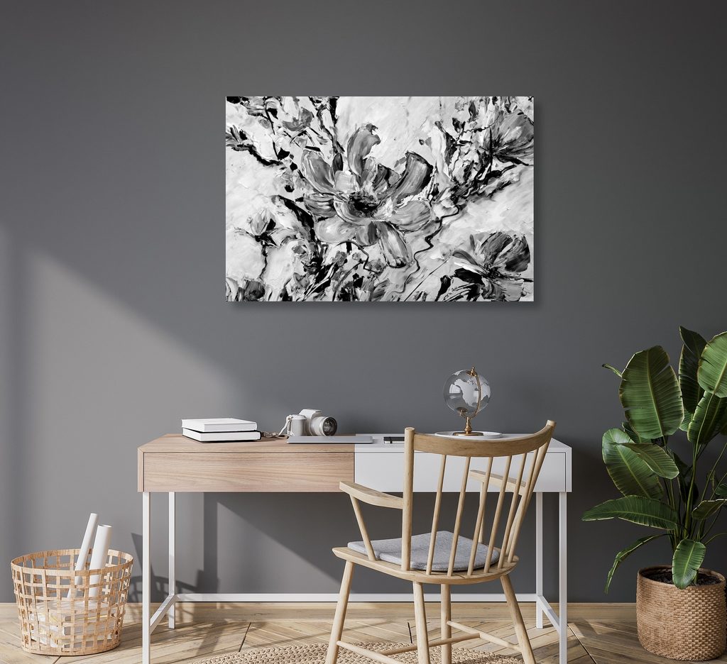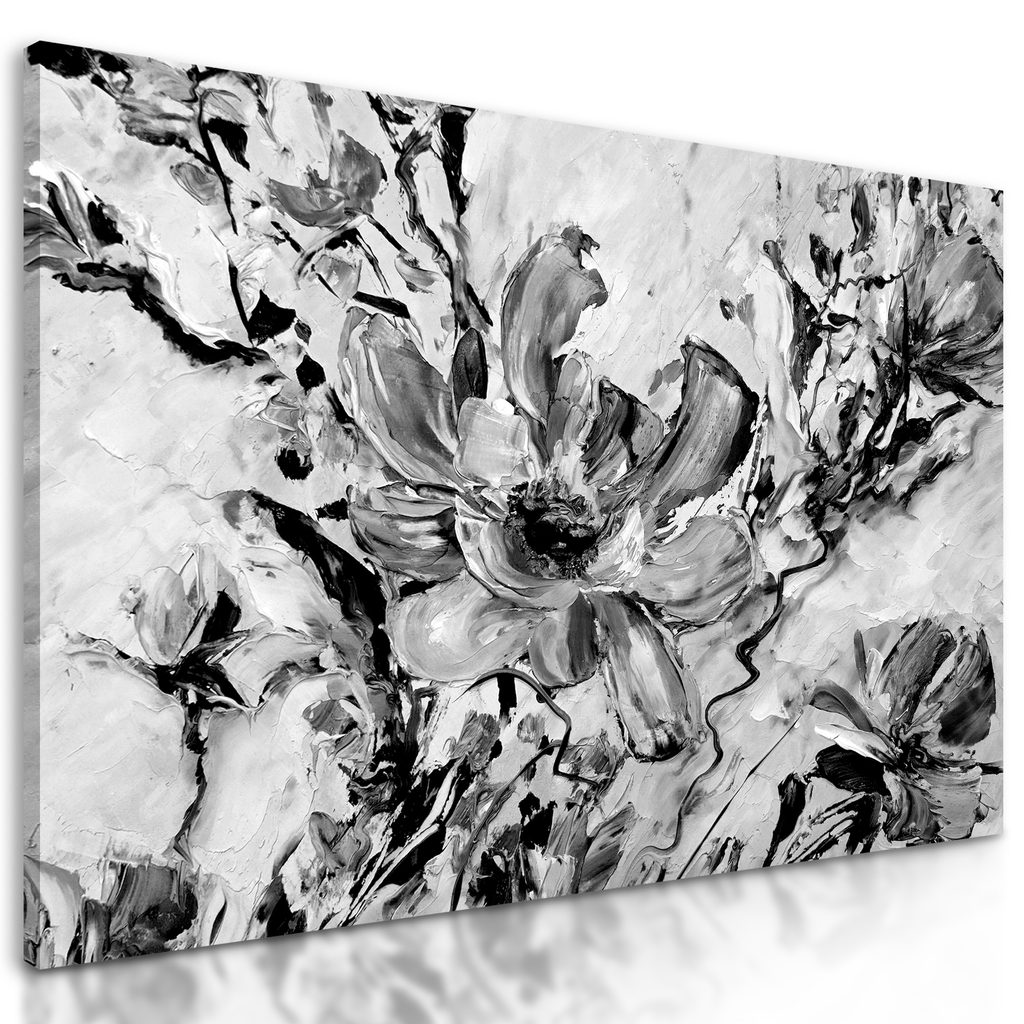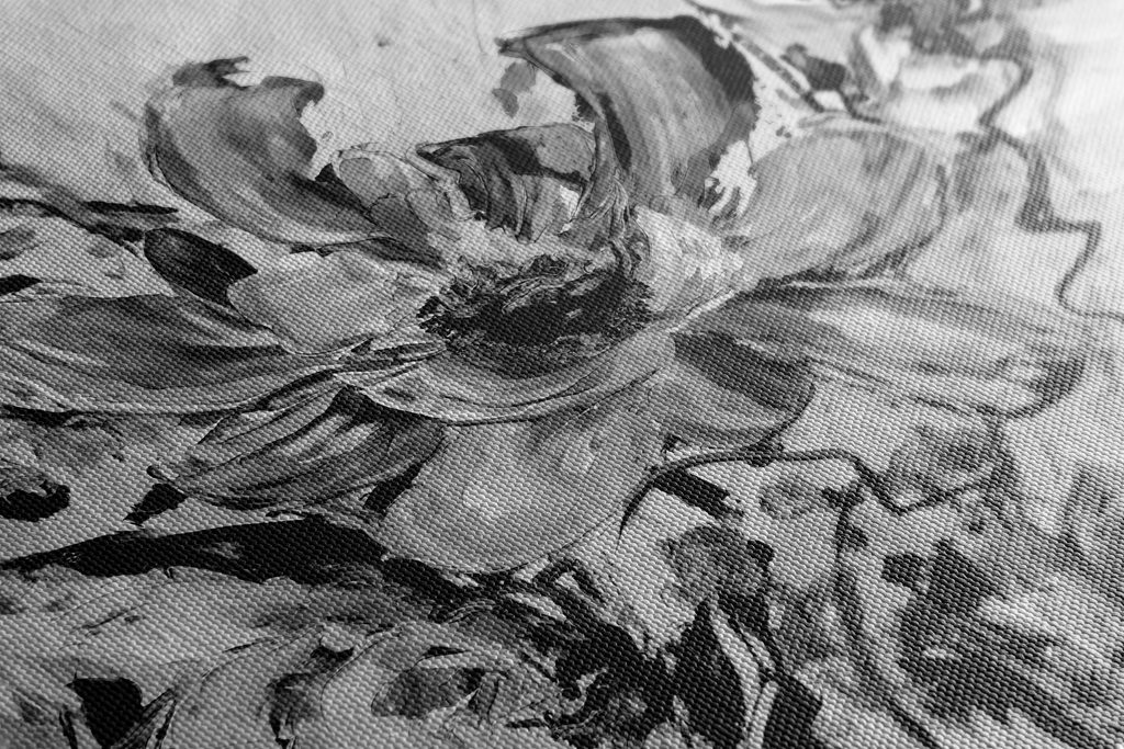 Obraz nádherná maľovaná abstrakcia kvetu v čiernobielom prevedení