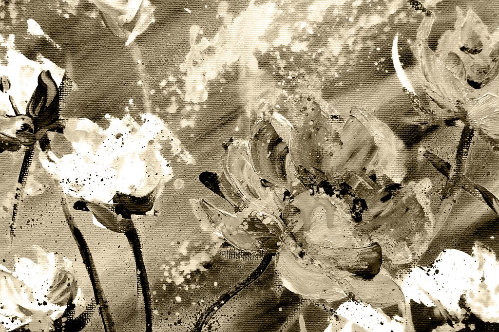 Obraz nádherná maľovaná abstrakcia kvetu v sépiovom prevedení