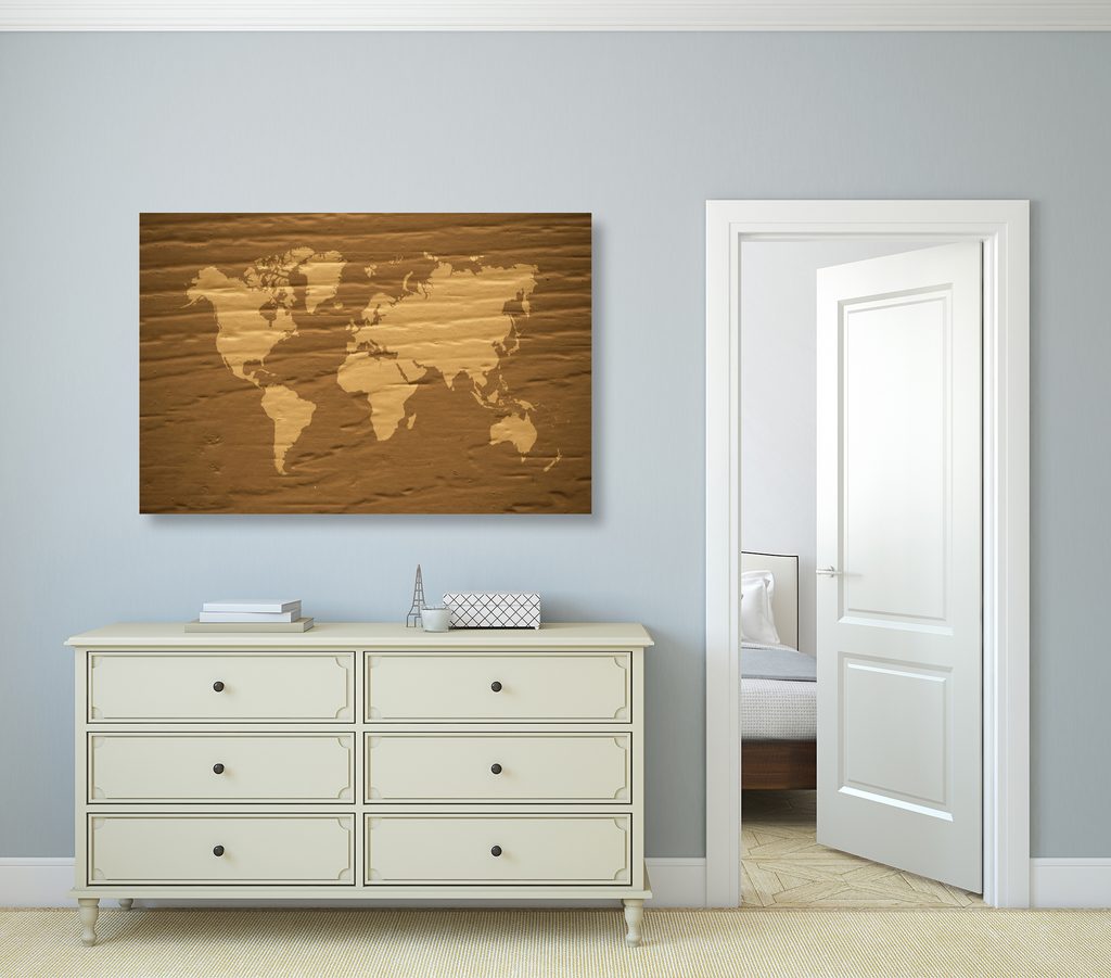 Obraz nádherná mapa sveta v hnedom prevedení