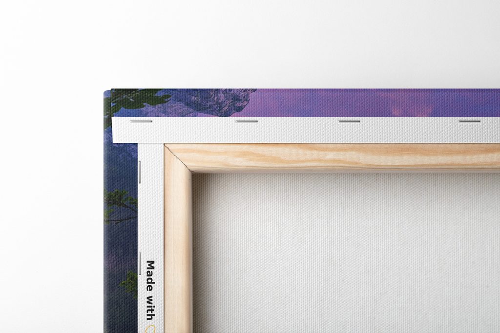 Keďže chceme, aby obraz na vašej stene vyzeral dokonalo, zameriavame sa na detaily. Preto je plátno dôkladne napnuté na rám, ktorý je z kvalitného dreva. Použitý rám je vyrábaný z rámarských líšt, ktoré sú vhodné na výrobu obrazov. Netreba zabudnúť ani na to, že na zadnej strane sú nahusto umiestnené spony. Spolu s obrazmi obdržíte 1 až 2 ks závesov, ktoré sú umiestené na zadnej strane, podľa toho, aký rozmer obrazu si zvolíte. Pre obrazy, ktorých šírka je nad 120 cm je na zosilnenie rámu vsadená drevená priečka.