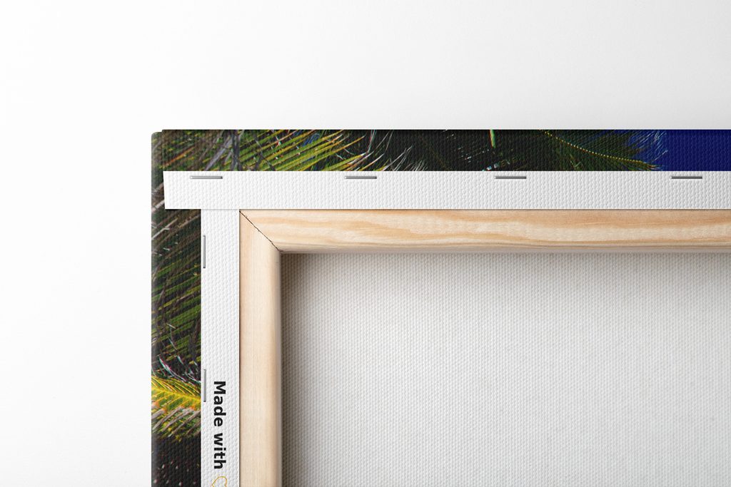 Keďže chceme, aby obraz na vašej stene vyzeral dokonalo, zameriavame sa na detaily. Preto je plátno dôkladne napnuté na rám, ktorý je z kvalitného dreva. Použitý rám je vyrábaný z rámarských líšt, ktoré sú vhodné na výrobu obrazov. Netreba zabudnúť ani na to, že na zadnej strane sú nahusto umiestnené spony. Spolu s obrazmi obdržíte 1 až 2 ks závesov, ktoré sú umiestené na zadnej strane, podľa toho, aký rozmer obrazu si zvolíte. Pre obrazy, ktorých šírka je nad 120 cm je na zosilnenie rámu vsadená drevená priečka.