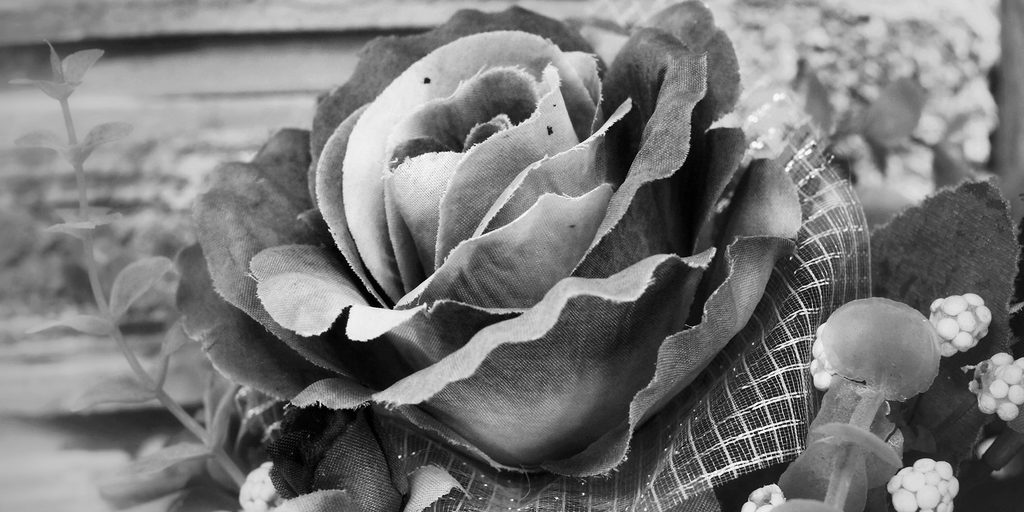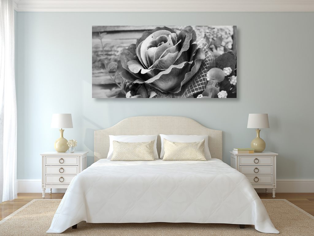 Obraz lúka plná kvetov v čiernobielom prevedení