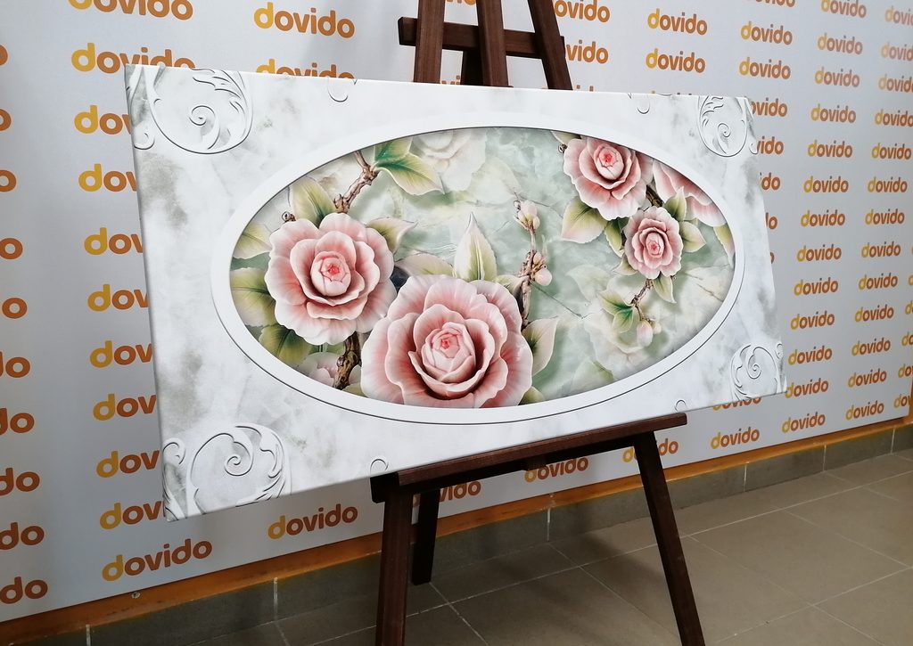 Obraz ruža na maľovanom pozadí v čiernobielom prevedení