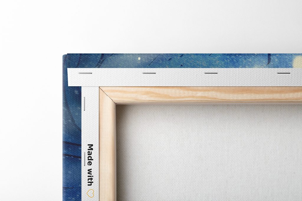Keďže chceme, aby obraz na vašej stene vyzeral dokonalo, zameriavame sa na detaily. Preto je plátno dôkladne napnuté na rám, ktorý je z kvalitného dreva. Použitý rám je vyrábaný z rámarských líšt, ktoré sú vhodné na výrobu obrazov. Netreba zabudnúť ani na to, že na zadnej strane sú nahusto umiestnené spony. Spolu s obrazmi obdržíte 1 až 2 ks závesov, ktoré sú umiestené na zadnej strane, podľa toho, aký rozmer obrazu si zvolíte. Pre obrazy, ktorých šírka je nad 120 cm je na zosilnenie rámu vsadená drevená priečka.