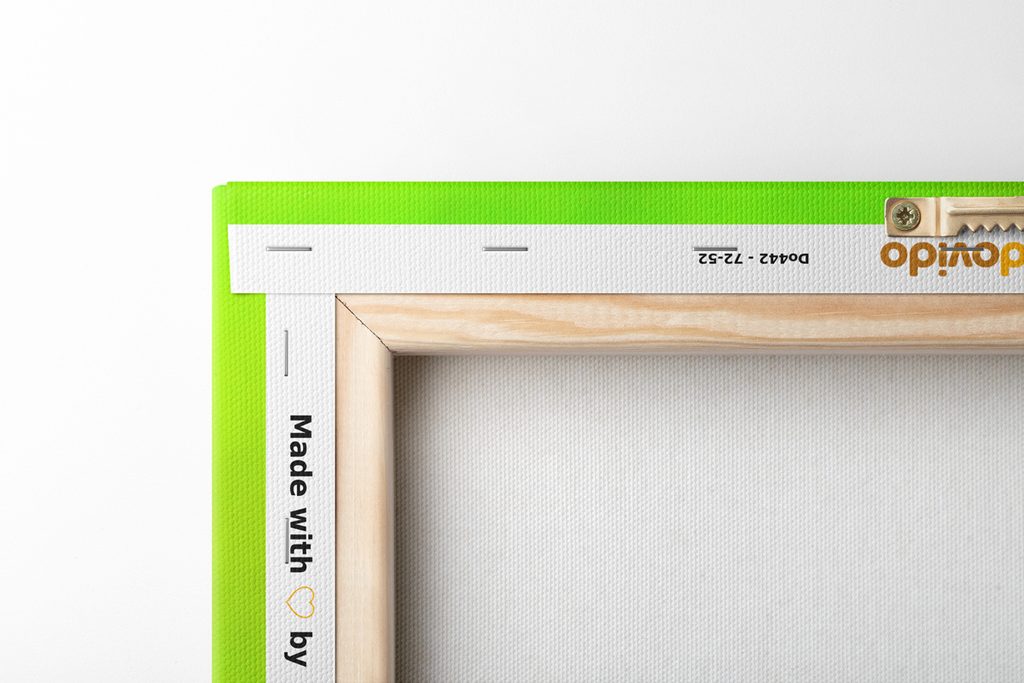 Keďže chceme, aby obraz na vašej stene vyzeral dokonalo, zameriavame sa na detaily. Preto je plátno dôkladne napnuté na rám, ktorý je z kvalitného dreva. Použitý rám je vyrábaný z rámarských líšt, ktoré sú vhodné na výrobu obrazov. Netreba zabudnúť ani na to, že na zadnej strane sú nahusto umiestnené spony. Spolu s obrazmi obdržíte 1 až 2 ks závesov, ktoré sú umiestené na zadnej strane, podľa toho, aký rozmer obrazu si zvolíte. Pre obrazy, ktorých šírka je nad 120 cm je na zosilnenie rámu vsadená drevená priečka.