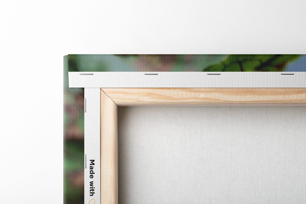 Keďže chceme, aby obraz na vašej stene vyzeral dokonalo, zameriavame sa na detaily. Preto je plátno dôkladne napnuté na rám, ktorý je z kvalitného dreva. Použitý rám je vyrábaný z rámarských líšt, ktoré sú vhodné na výrobu obrazov. Netreba zabudnúť ani na to, že na zadnej strane sú nahusto umiestnené spony. Spolu s obrazmi obdržíte 1 až 2 ks závesov, ktoré sú umiestené na zadnej strane, podľa toho, aký rozmer obrazu si zvolíte. Pre obrazy, ktorých šírka je nad 120 cm je na zosilnenie rámu vsadená drevená priečka.