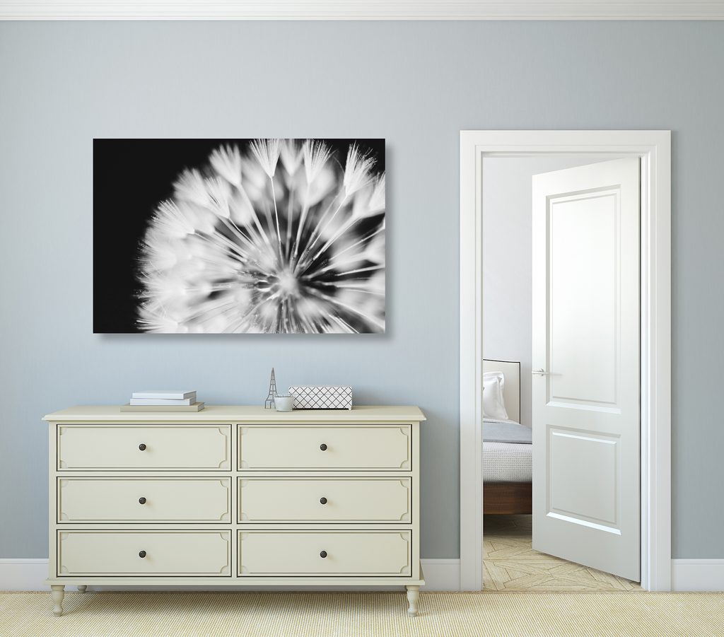 Obraz nádherný detail púpavy v čiernobielom prevedení
