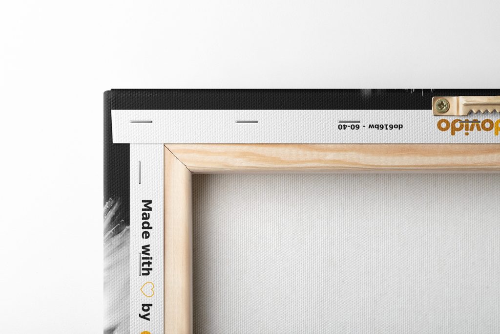 Keďže chceme, aby obraz na vašej stene vyzeral dokonalo, zameriavame sa na detaily. Preto je plátno dôkladne napnuté na rám, ktorý je z kvalitného dreva. Použitý rám je vyrábaný z rámarských líšt, ktoré sú vhodné na výrobu obrazov. Netreba zabudnúť ani na to, že na zadnej strane sú nahusto umiestnené spony. Spolu s obrazmi obdržíte 1 až 2 ks závesov, ktoré sú umiestené na zadnej strane, podľa toho, aký rozmer obrazu si zvolíte. Pre obrazy, ktorých šírka je nad 120 cm je na zosilnenie rámu vsadená drevená priečka.