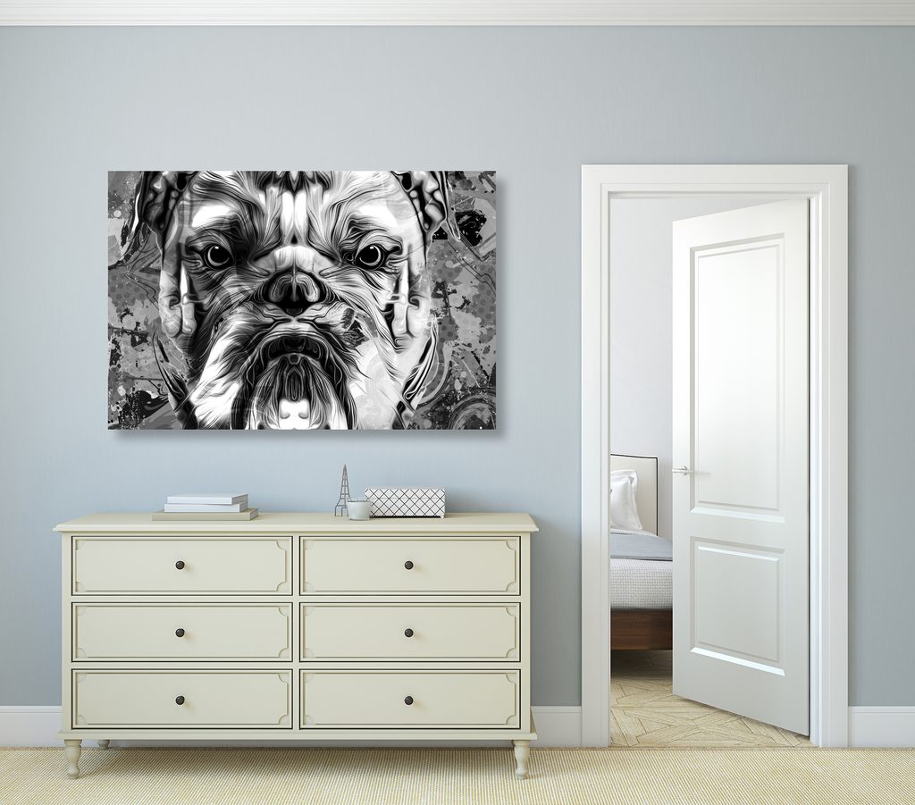 Obraz nahnevaný buldoček v čiernobielom prevedení