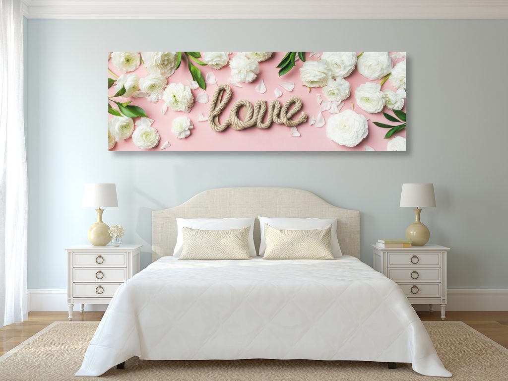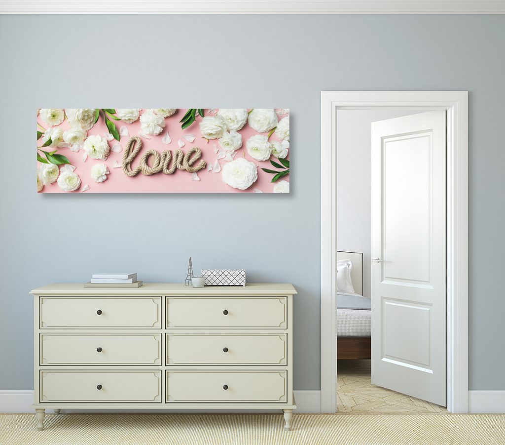 Obraz nápis Love s kvetinovým pozadím v čiernobielom prevedení